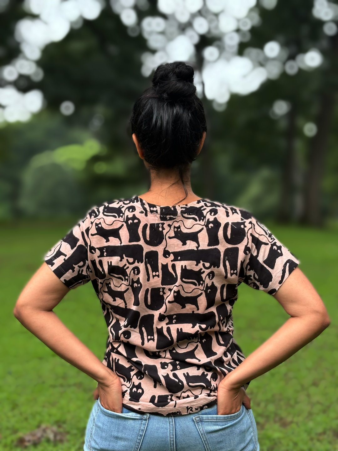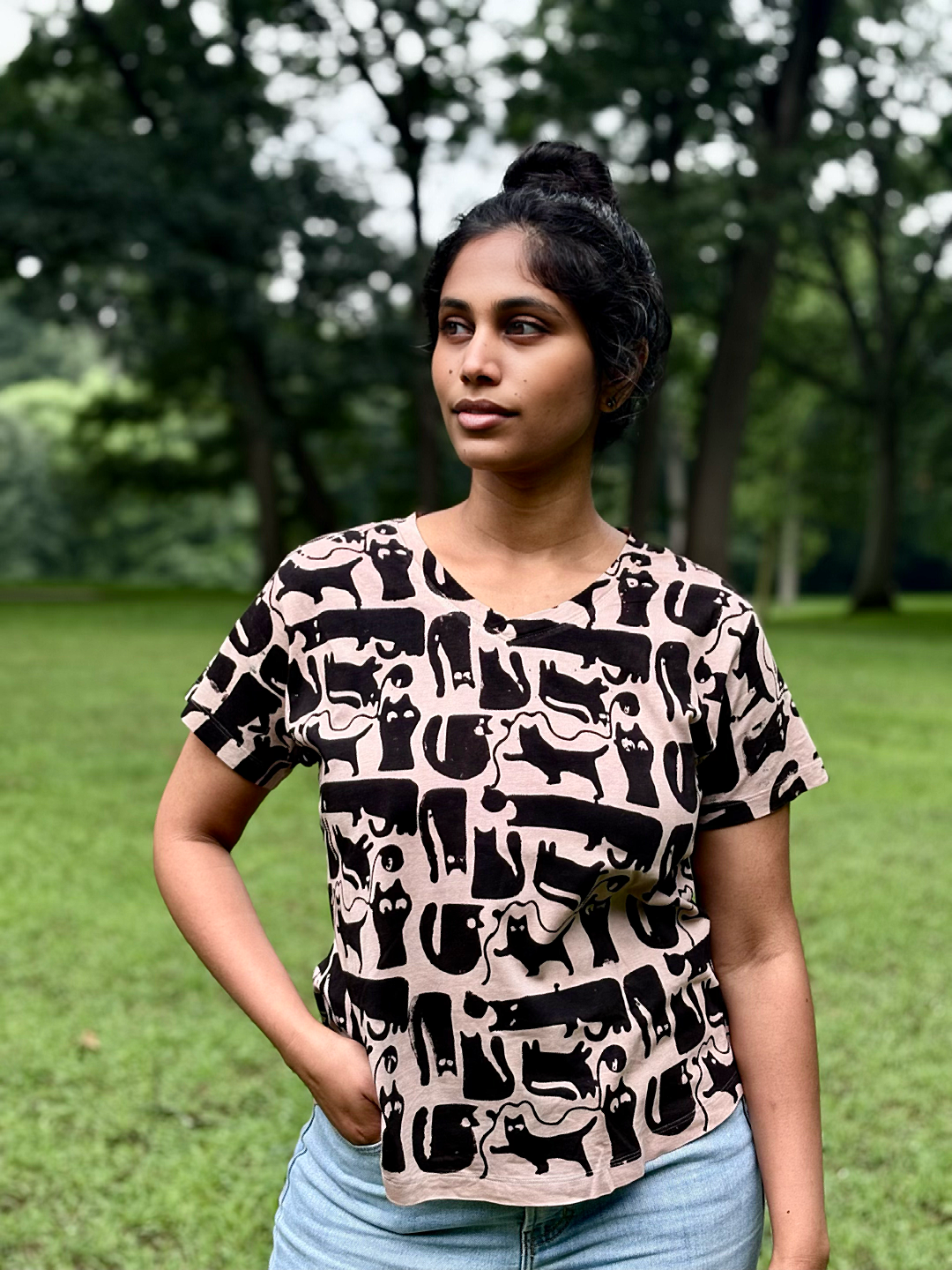 Elevate your everyday wardrobe with this handcrafted cotton V-neck t-shirt — a perfect blend of modern style and age-old tradition. Made by fourth-generation artisans in Rajasthan, each t-shirt is hand block printed using natural dyes and a 100-year-old technique passed down through generations.