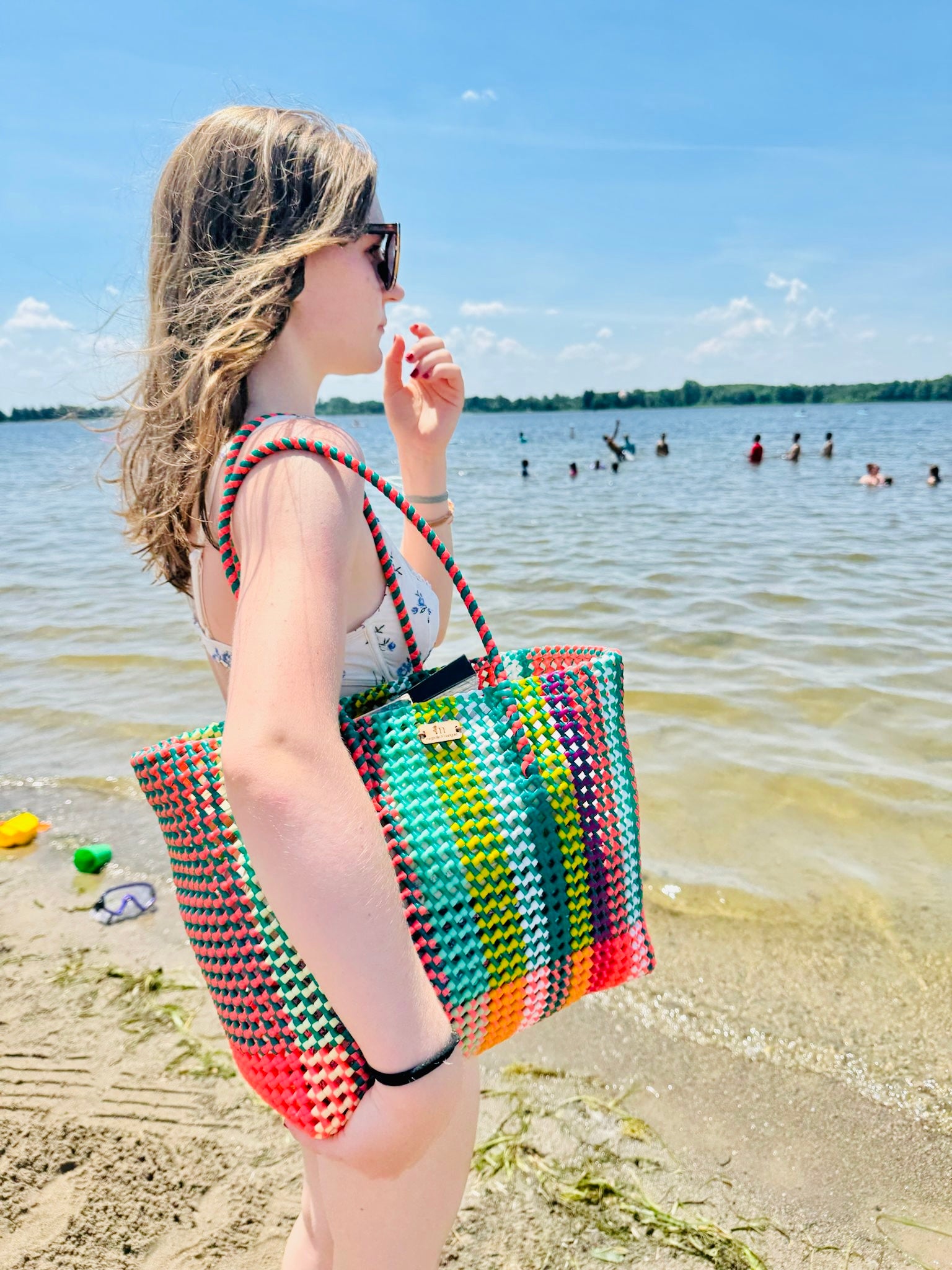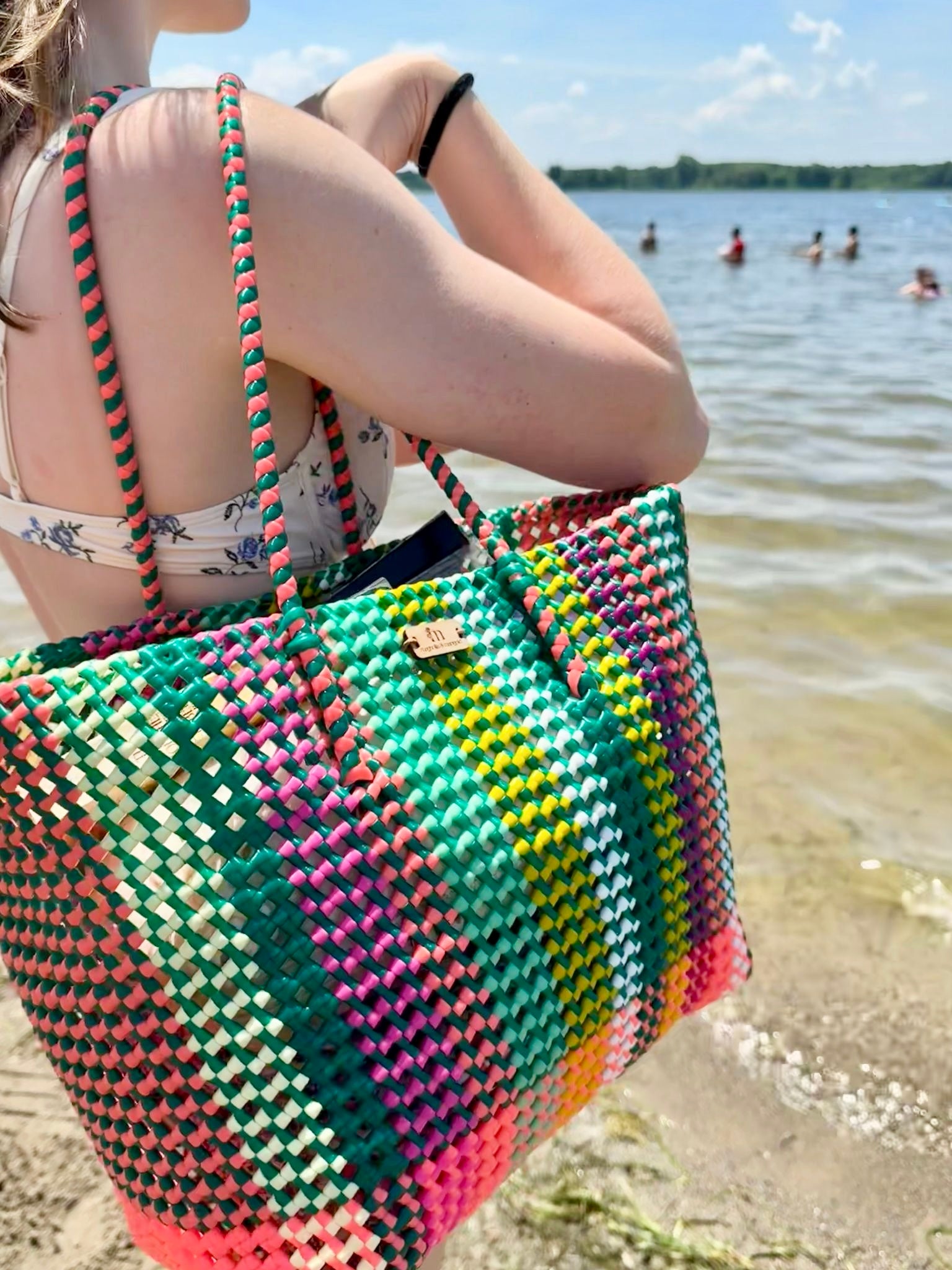 Sturdy, spacious, and built to last, this bag is perfect for everything from farmers’ market hauls to beach days, picnics, or even stylish home storage. The colorful, geometric weave not only adds charm but also highlights the artisanal precision behind each creation.