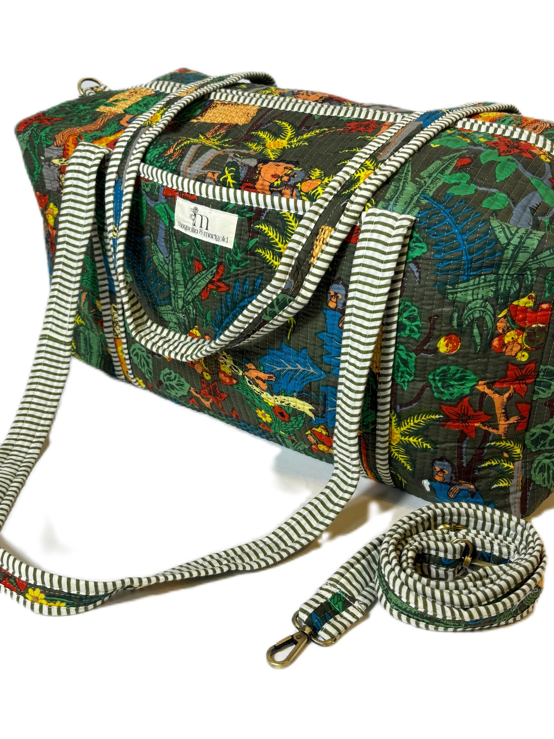 Our block Print Duffel is where tradition meets adventure-crafted by skilled artisans in Jaipur using age-old block printing techniques. Spacious, sturdy, and full of character, it’s designed to carry everything you need (and then some) while keeping your travels stylish and comfortable.