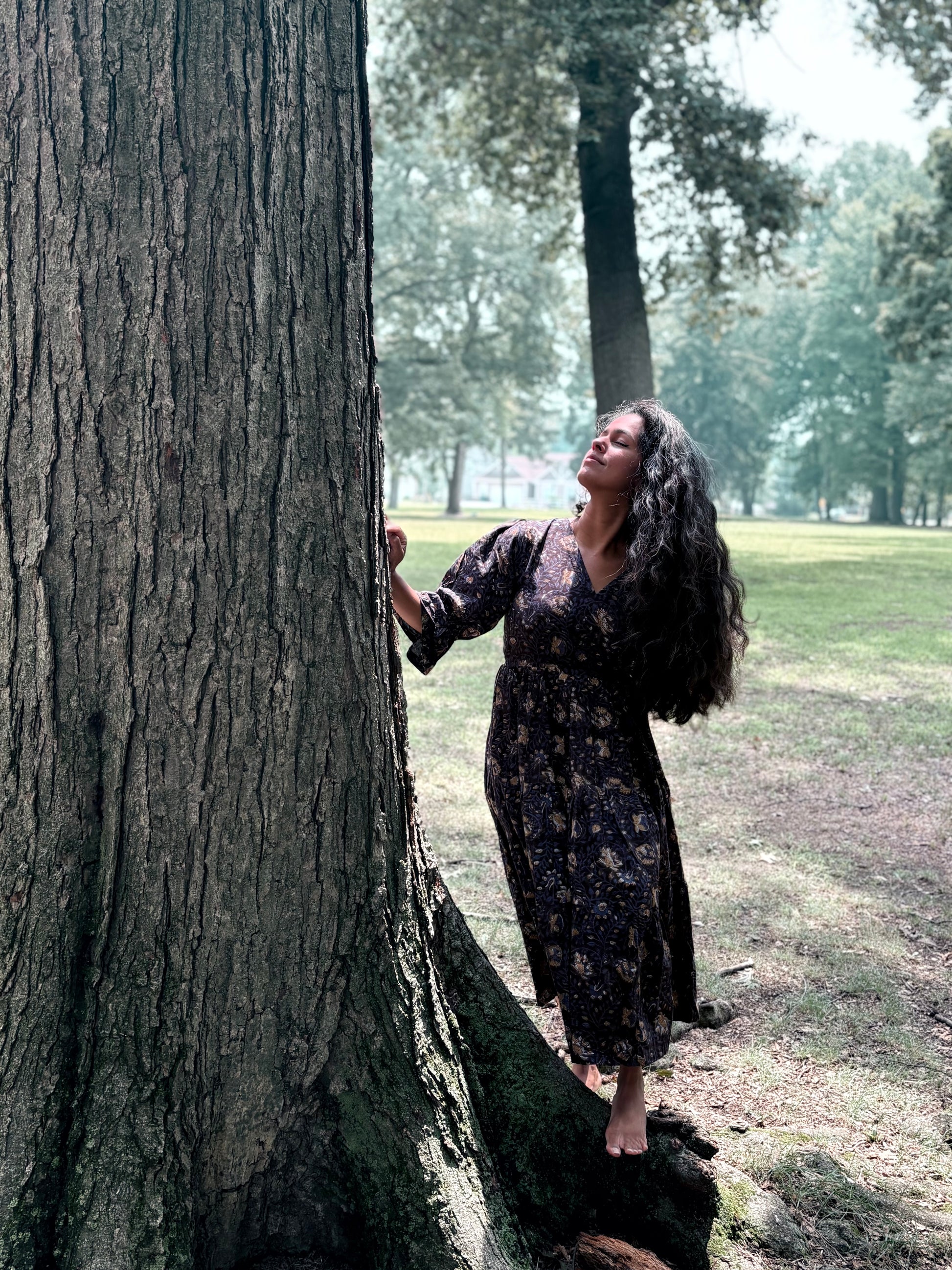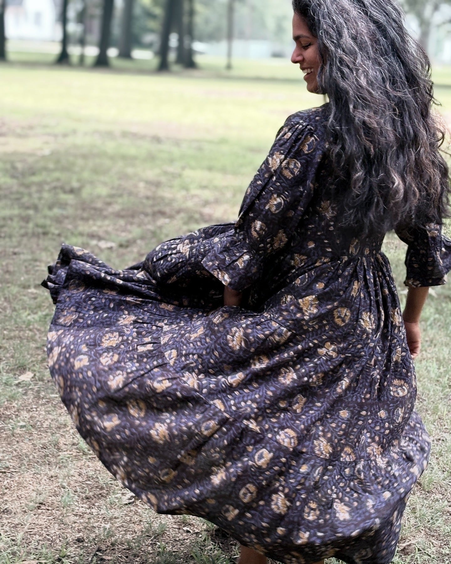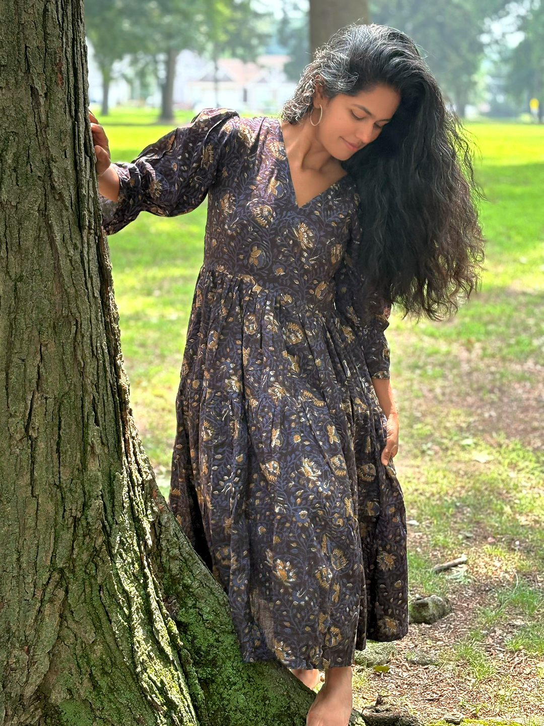 The earthy floral print, created using traditional hand block techniques and natural dyes, gives it a timeless, artisanal charm. It’s the kind of dress you’ll reach for on slow days, nature walks, or casual gatherings-easy to wear, easy to love.