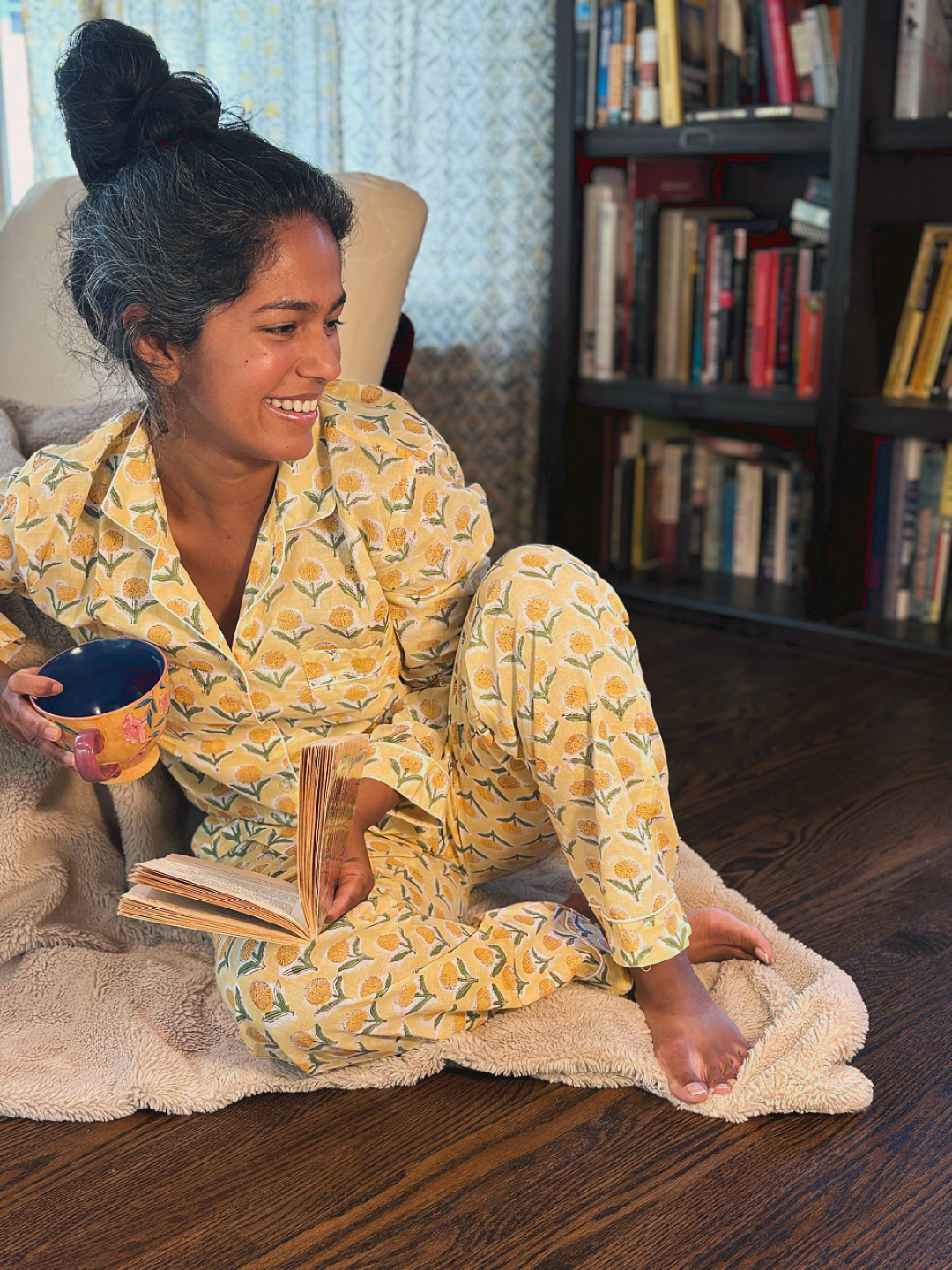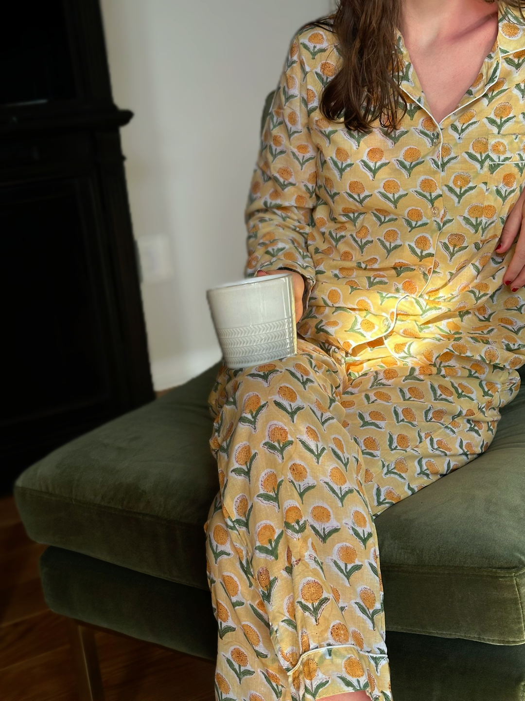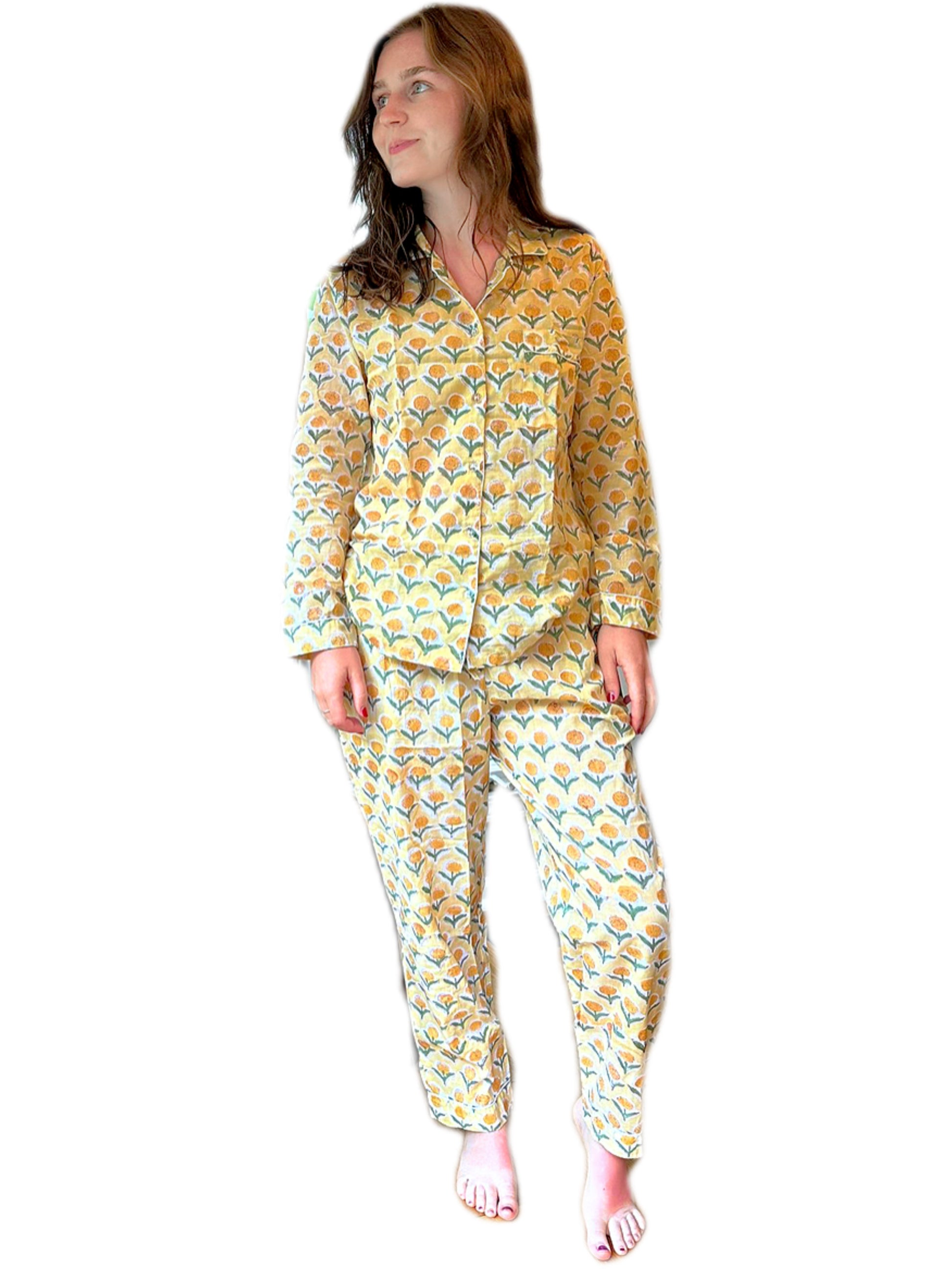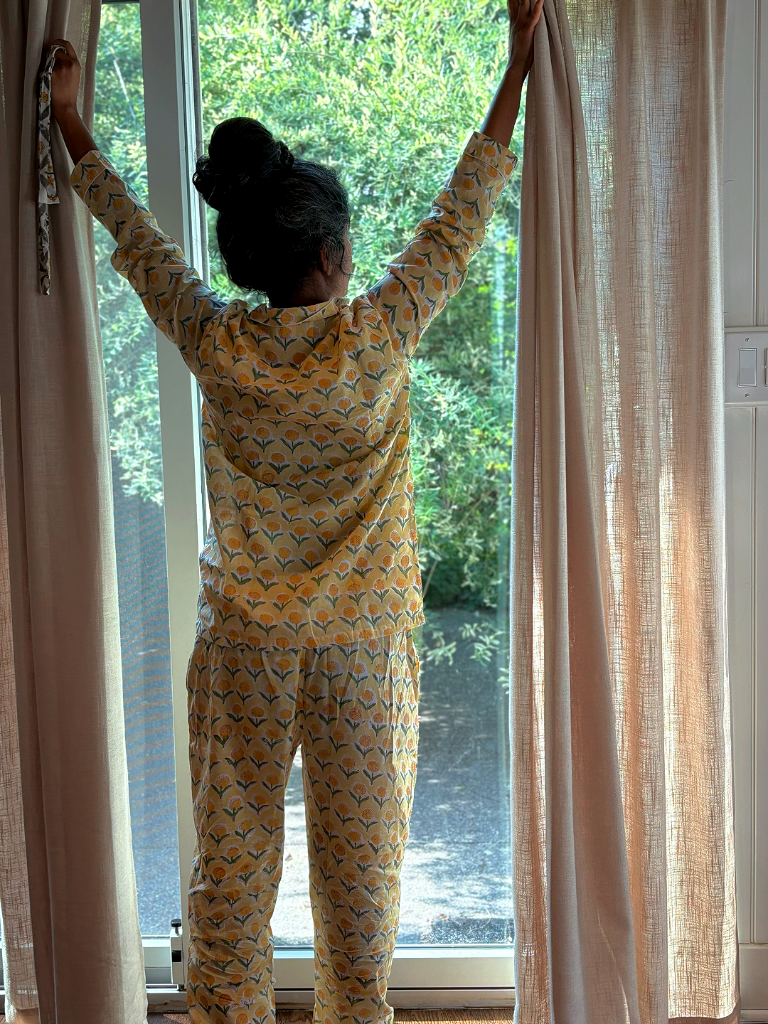 Cozy up in color with our Hand Block Printed Cotton Pajama Set!
