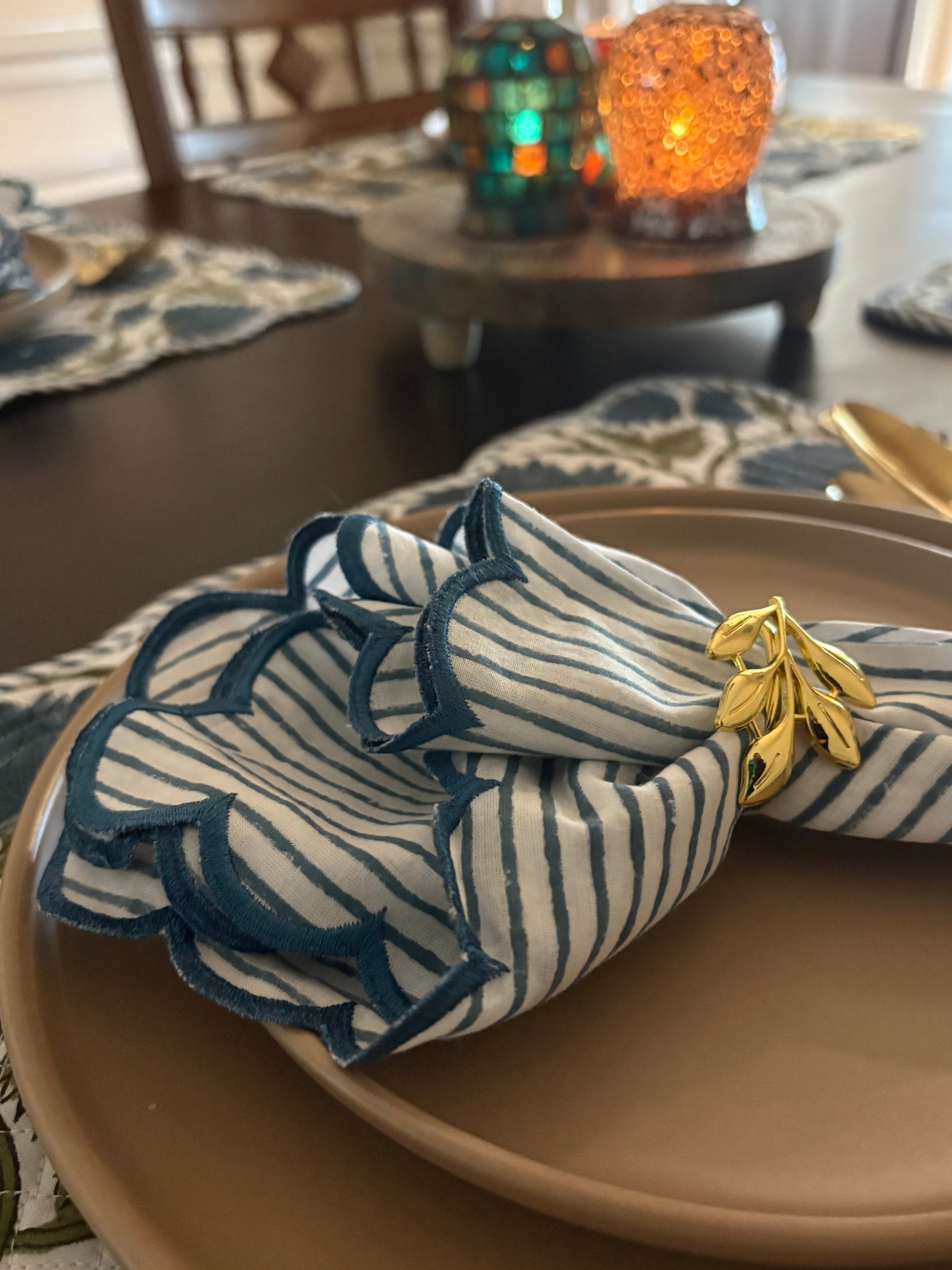 Our 100% cotton quilted, double-sided block-printed placemats are crafted to bring everyday elegance to your table. Each mat features two unique, artisan-made hand-block-printed patterns from India, allowing you to refresh your tablescape with a simple flip.